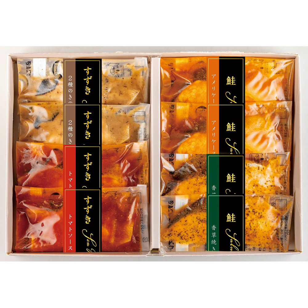 国産洋風デリセット(すずきのトマトソース・すずきの2種きのこソース・鮭のアメリケーヌソース 各70g×2、鮭香草焼50g×2)×1セット