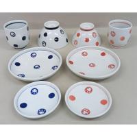 小皿:(約)径10.1×高さ2cm、中皿:(約)径15×高さ3.7cm、飯碗青:(約)径11.6×高さ7.5cm、飯碗赤:(約)径10.5×高さ6.5cm、湯呑青:(約)径7.5×高さ8.7cm、湯呑赤:(約)径7.2×高さ8.1cm