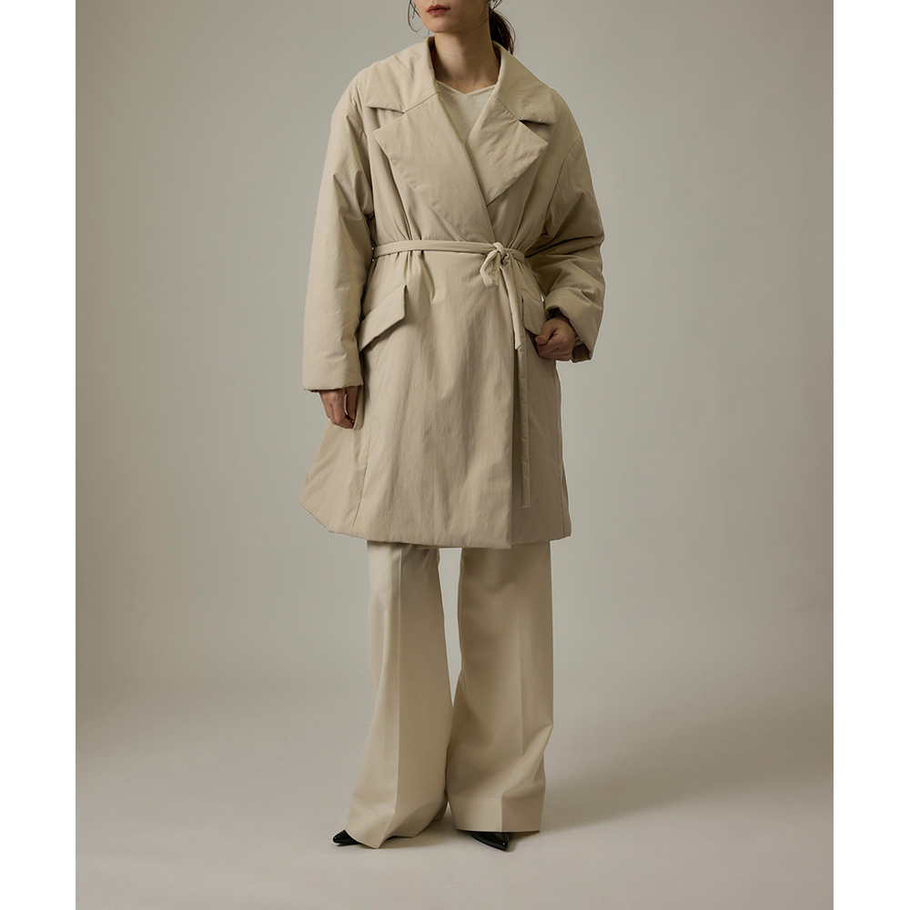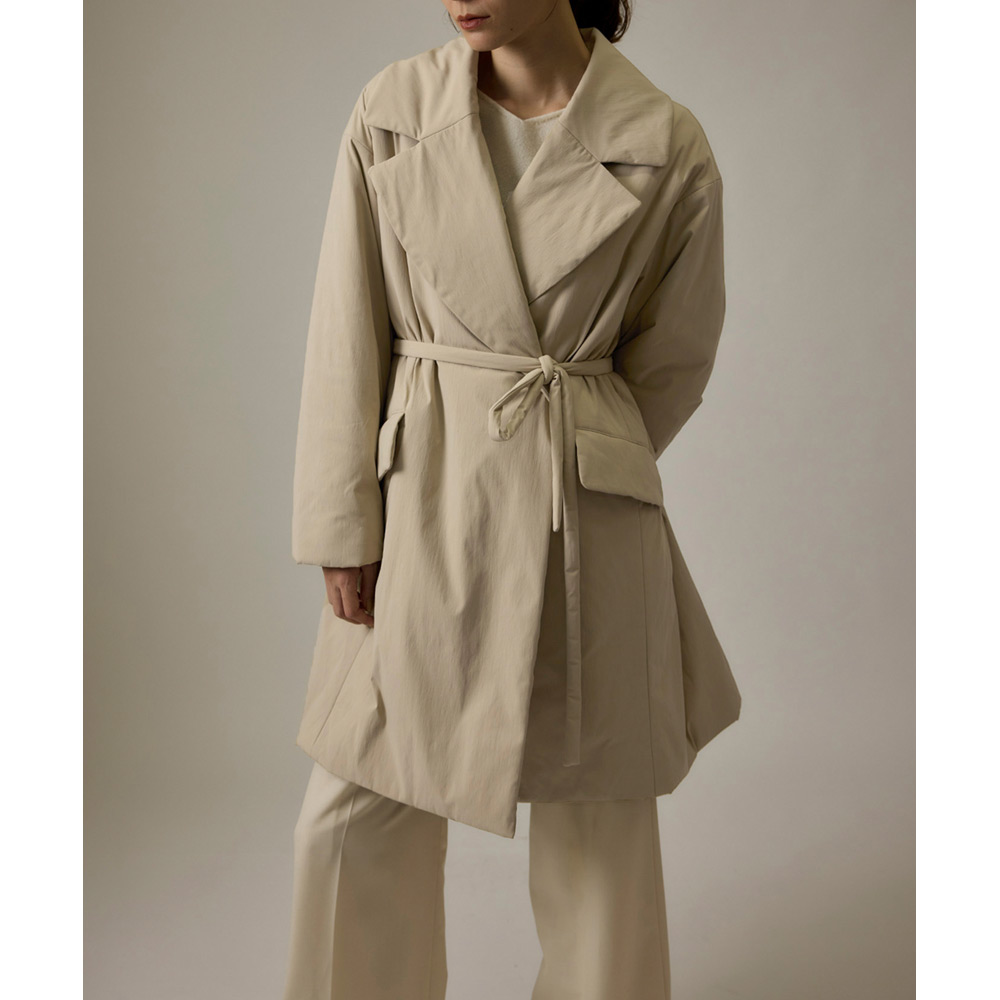イタリア・リモンタ社より設立されたリモンタイースト社の綿ライクなストレッチ性のあるナイロンタスラン素材。エレガントな印象に着こなせるナイロン素材です。内側にはイタリアで開発された特殊素材で、羽毛を圧縮してシート状に加工し、均一な保温性に優れた「Thin Down(シンダウン)」を使用しているため、カジュアルな印象になりがちなダウンをすっきりした印象に着こなせます。