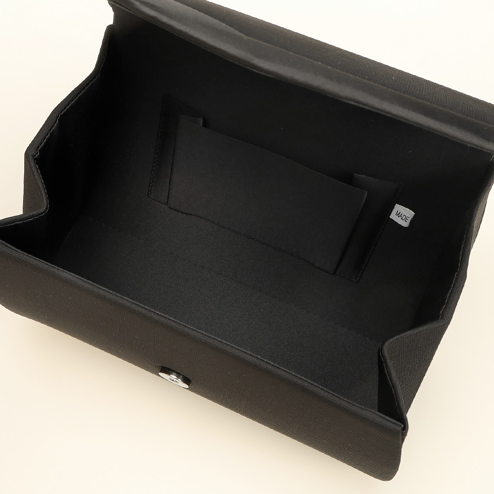 容量たっぷりの大きめサイズ。V字のサテンが引き立ちます。
