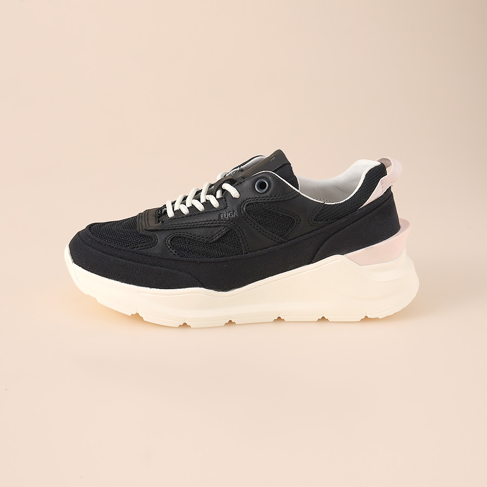 D.A.T.E.の代表的アイテム<FUGA>。配色にこだわった目を引くデザインと履きやすさが両立するダッドスニーカー。カジュアルになりがちなスニーカーですがレザー使いが得意で上品に履きこなせる一足です。