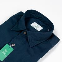 高機能撚糸技術によって生まれた、革新的な糸「SUPER ZERO」を使用。ふんわりと空気を含んだ柔らかな軽いシャツで、保温性・吸水性・速乾性に優れています。衿型はセミワイドです。