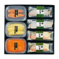 秋鮭粕漬60g×2、紅鮭味噌漬60g×2、辛子明太子60g、味付け数の子70g(密封袋入)、醤油漬いくら50g