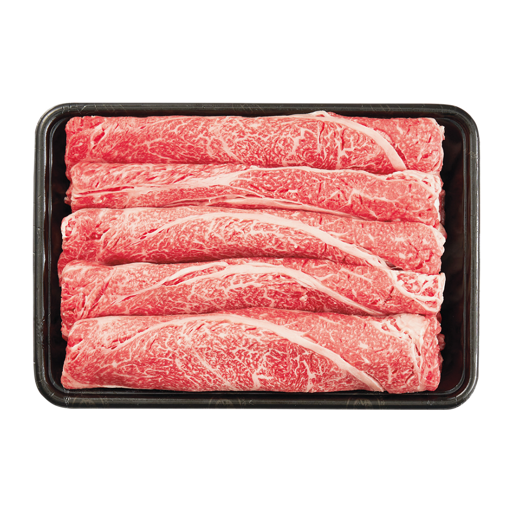 国産黒毛和牛の肩ロースをすき焼き用にスライスしました。深い味わいとジューシーな肉質をご堪能ください。
