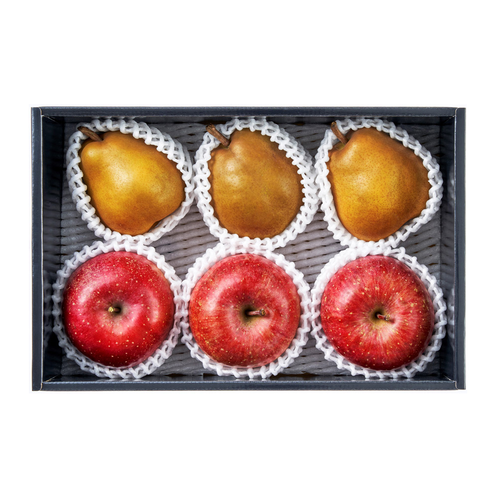 山形県産金系ラ・フランス・青森県産サンふじりんご各3玉、計1.8kg