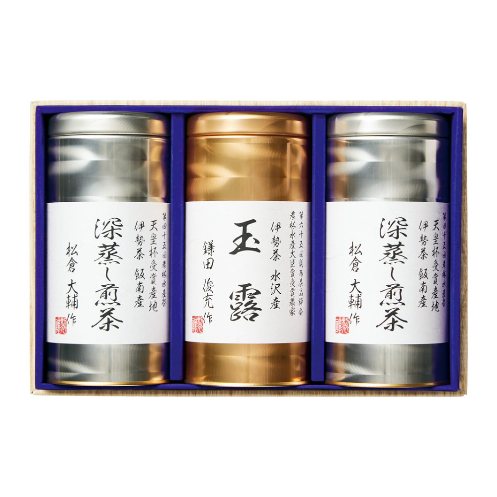 鎌田俊充作「玉露」120g、松倉大輔作「深蒸し煎茶」120g×2 原料原産地:茶葉(三重県)