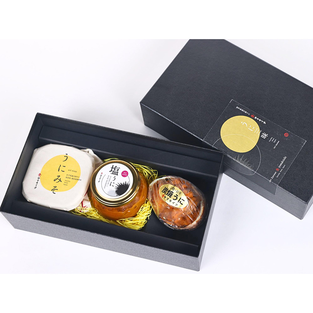 焼うに(80g)×1、塩うに(80g)×1、うに味噌(100g)×1