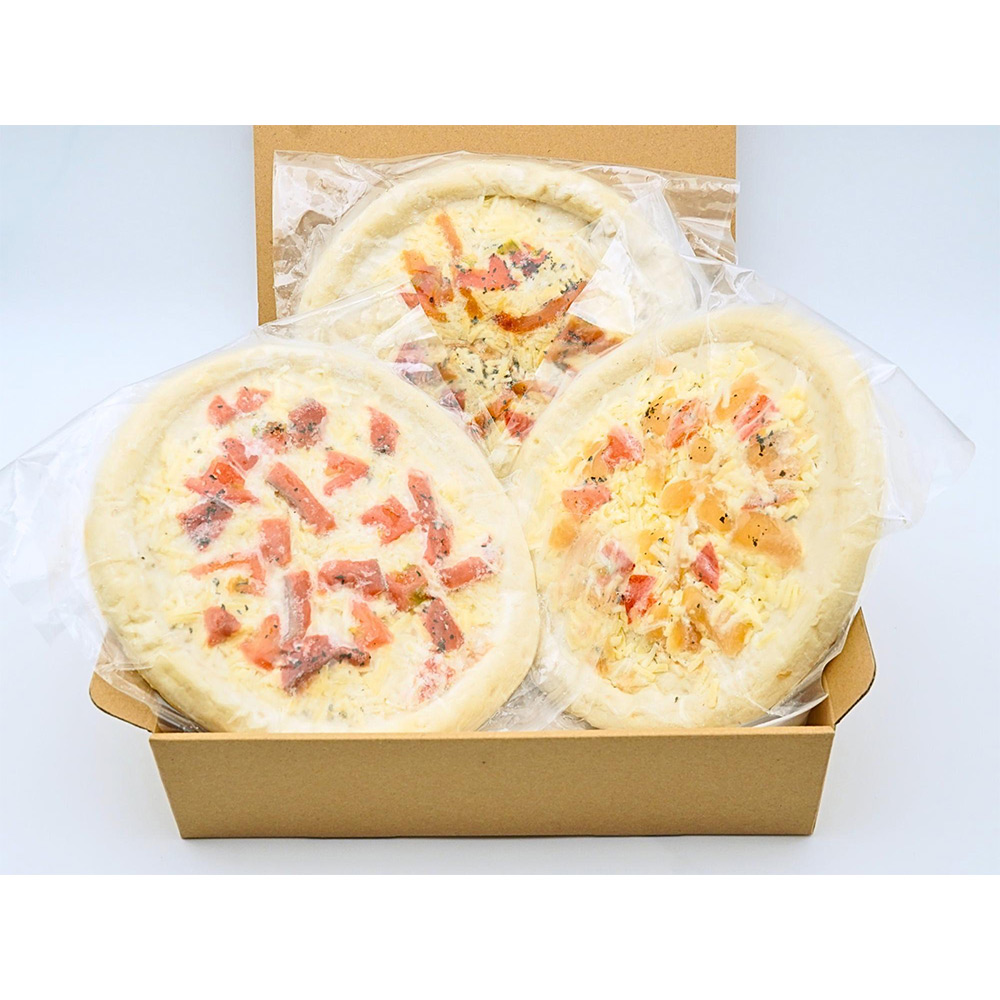 ほや一夜漬ピザ×1枚、ほたて一夜漬ピザ×1枚、しゃけ一夜漬ピザ×1枚