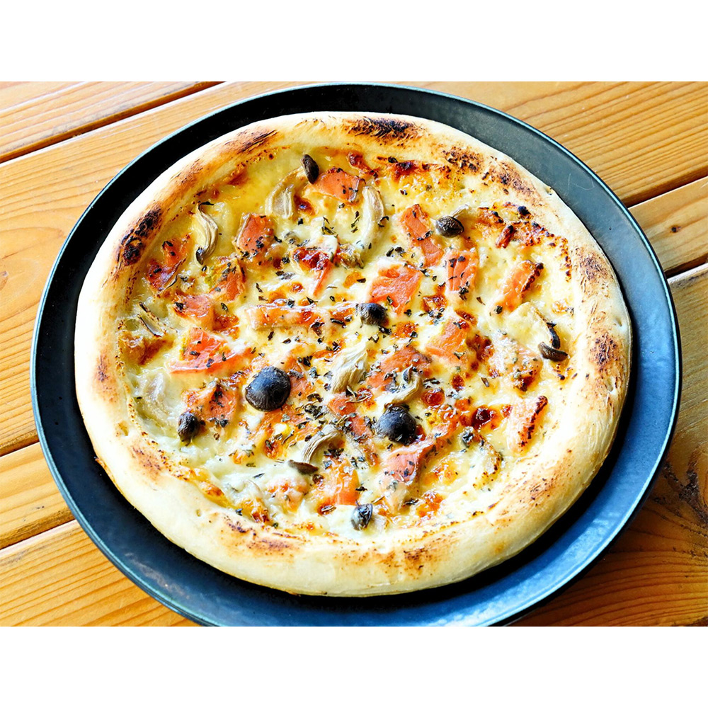 ほや・ほたて・しゃけ、豊かな海の幸を使用したピザ