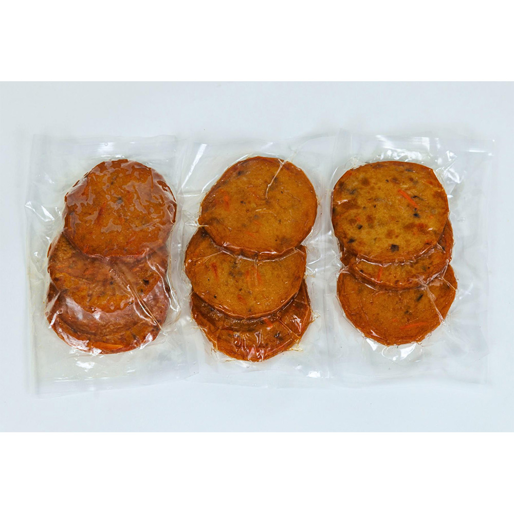 昭和43年創業の確かな技と、いわきの恵みが出会いました。常磐もののカナガシラと香り豊かな「いわきゴールド椎茸」を練り込んだ3種の揚げかまは、魚と椎茸の旨みがほどよく調和した味わい。ご家庭の食卓やお酒のおともにはもちろん、大切な方への贈りものとしても喜ばれる、海と山の幸が織りなすやさしい逸品です。