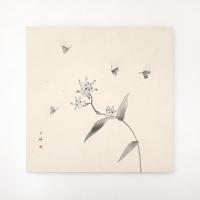 作品タイトルの「バタフライエフェクト」は、「蝶の羽ばたきのようなひとりひとりのささやかな営みが、連鎖し、世界を動かす可能性がある」という意味を持ち、私たちの日々の行動が、予測しないような大きな結果や変化をもたらす、ことを教えてくれます。山岸先生は、幼いころより書で培った、丁寧な描線を駆使して、美しい世界を表現されています。