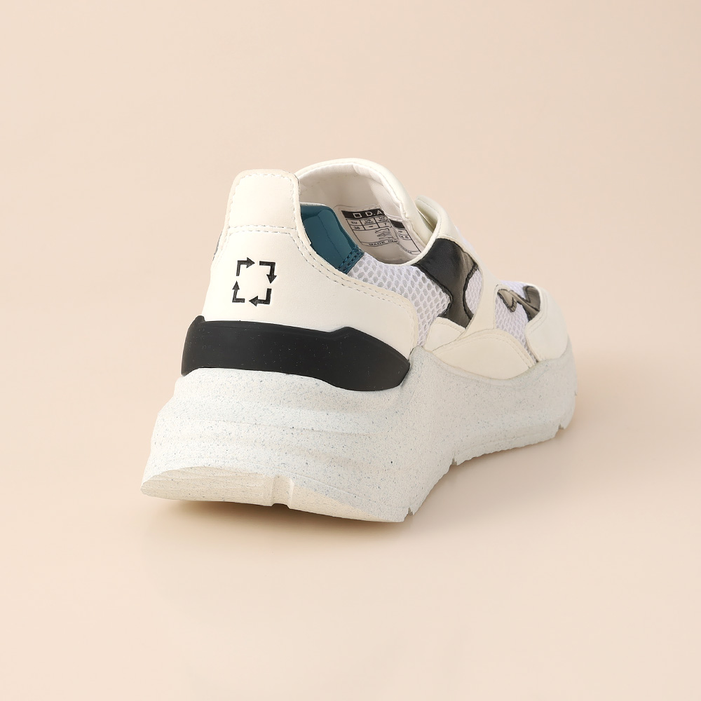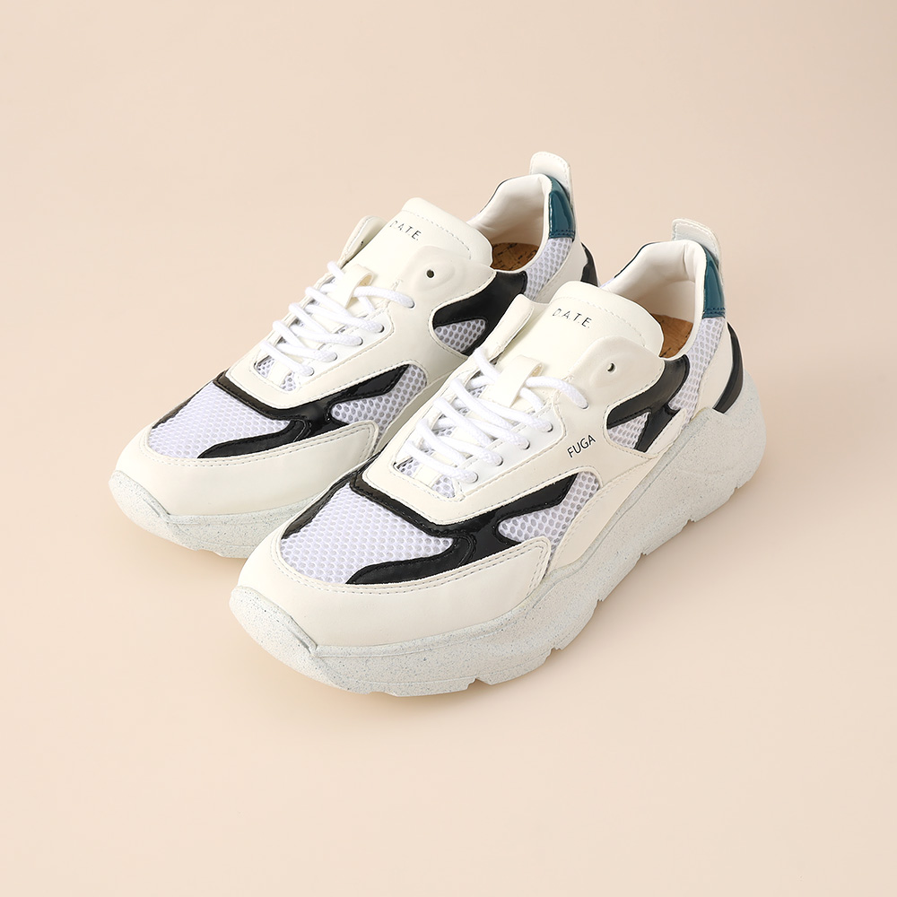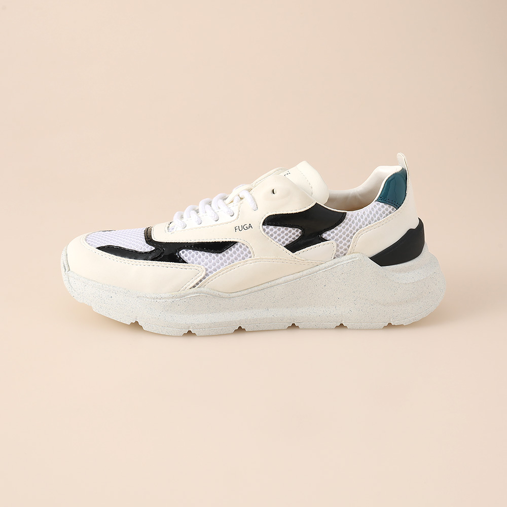 D.A.T.E.の代表的アイテム<FUGA>。配色にこだわった目を引くデザインと履きやすさが両立するダッドスニーカー。カジュアルになりがちなスニーカーですがレザー使いが得意で上品に履きこなせる一足です。