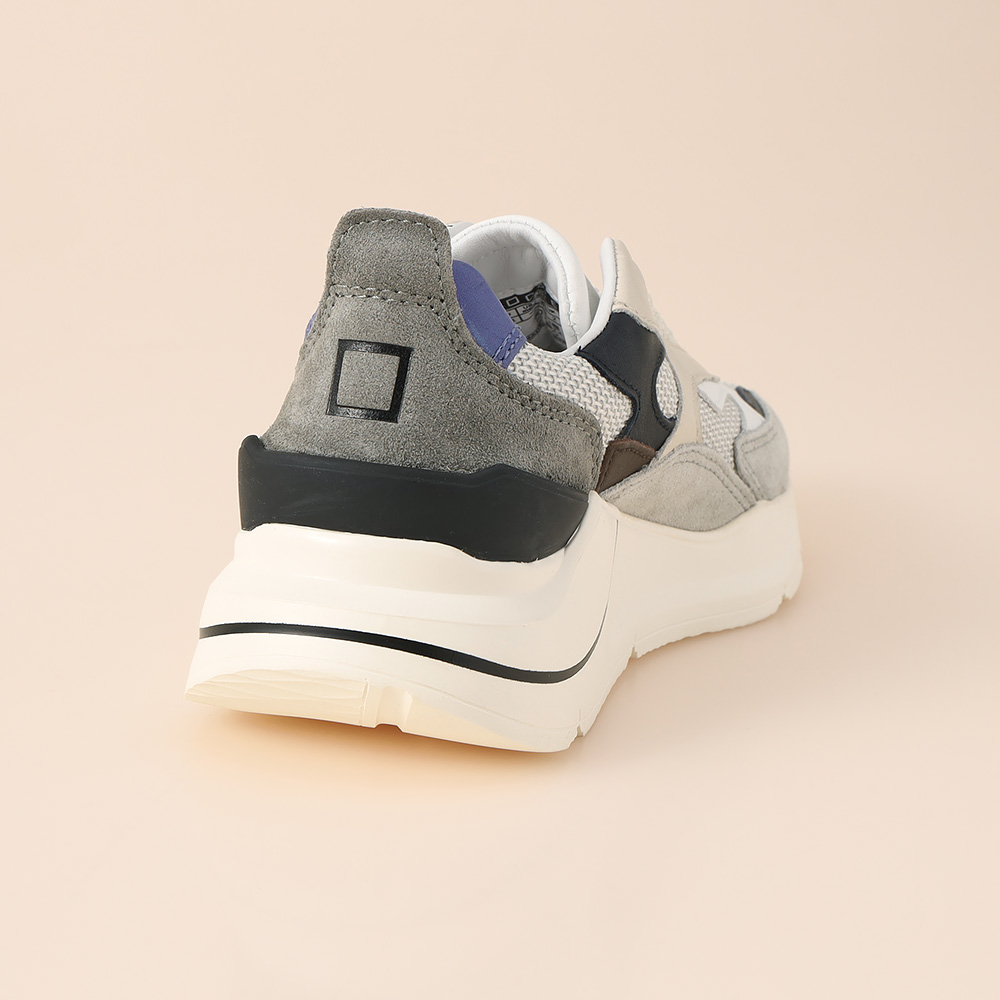 D.A.T.E.の代表的アイテム<FUGA>。配色にこだわった目を引くデザインと履きやすさが両立するダッドスニーカー。カジュアルになりがちなスニーカーですがレザー使いが得意で上品に履きこなせる一足です。