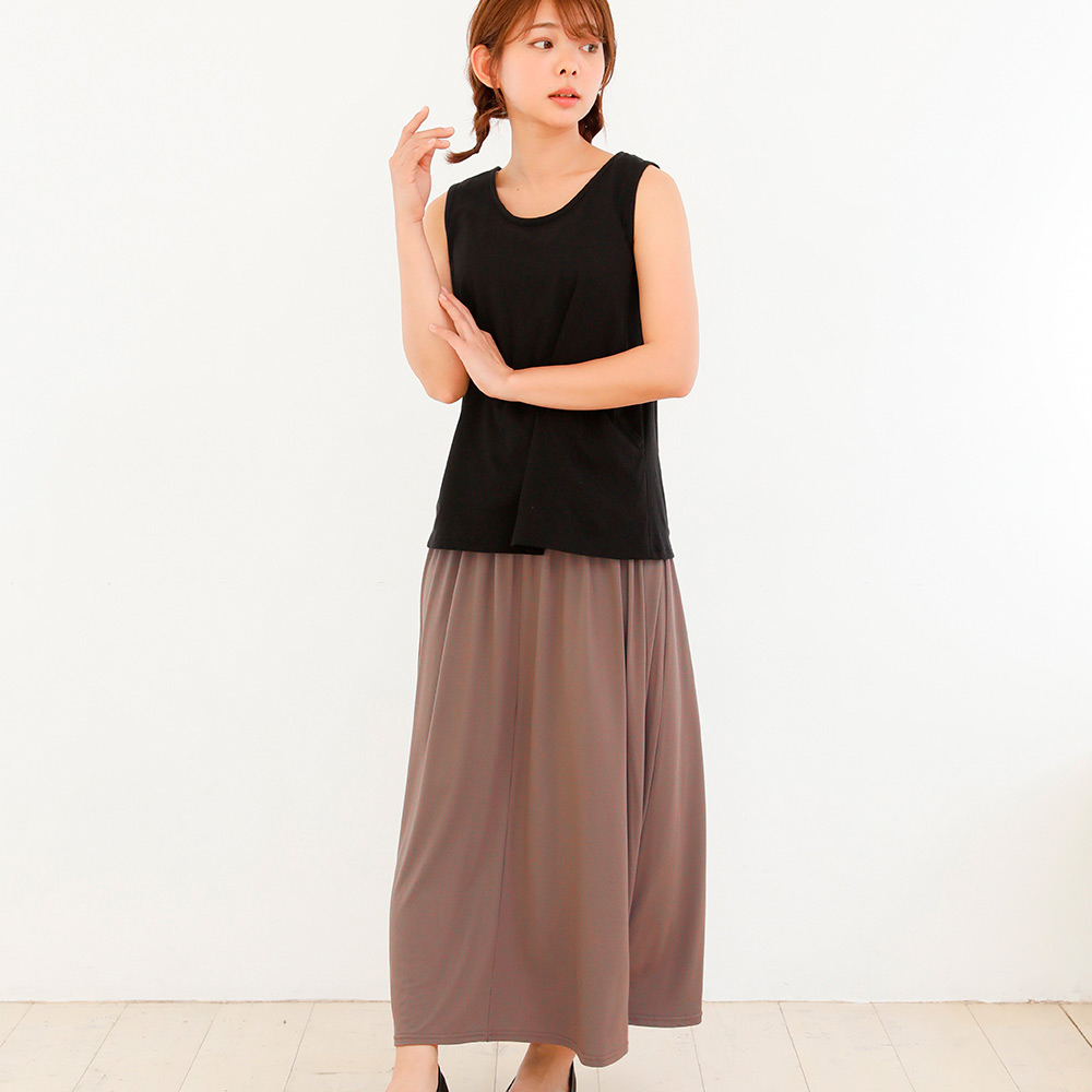 <ガウチョパンツ、マキシスカート>本体部分:ポリエステル88%・ポリウレタン12%、おなか部分:綿95%・ポリウレタン5%