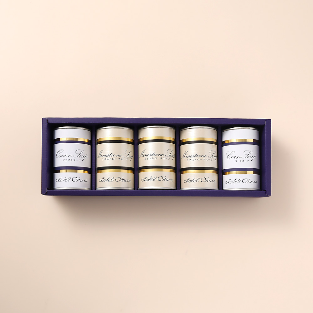 ミネストローネスープ(160g)×3、オニオンスープ(160g)×1、コーンスープ(160g)×1