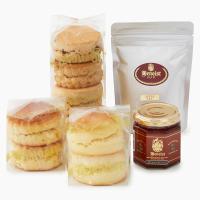 スコーントライアルセット(4個入り)×1、スコーン・プレーン(2個入り)×1、英国小麦のスコーン・オレンジ(2個入り)×1、ストロベリージャム200g×1、アップルティー詰替え×1