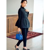 ニット1 枚のコーデになりがちな冬に、新鮮な重ね着を簡単に楽しめるジレです。表地はセミマットでスポーティに見えないキルティング素材。裏地付き。上身頃はフィットさせ、下半分のポワンとした丸みが映えるシルエットに。真冬はコートの中にも着られる厚みです。まず絶対挑戦したいのは、今年もますます人気のハイネックニット合わせ。オールブラックでもスタイリッシュに仕上がります。シャツやブラウスに合わせても好バランスです。