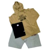 スウェット、パーカー、ジップパーカー、Tシャツ、ショーツなどのリラクシングウェアが3点入ったお楽しみ袋です。