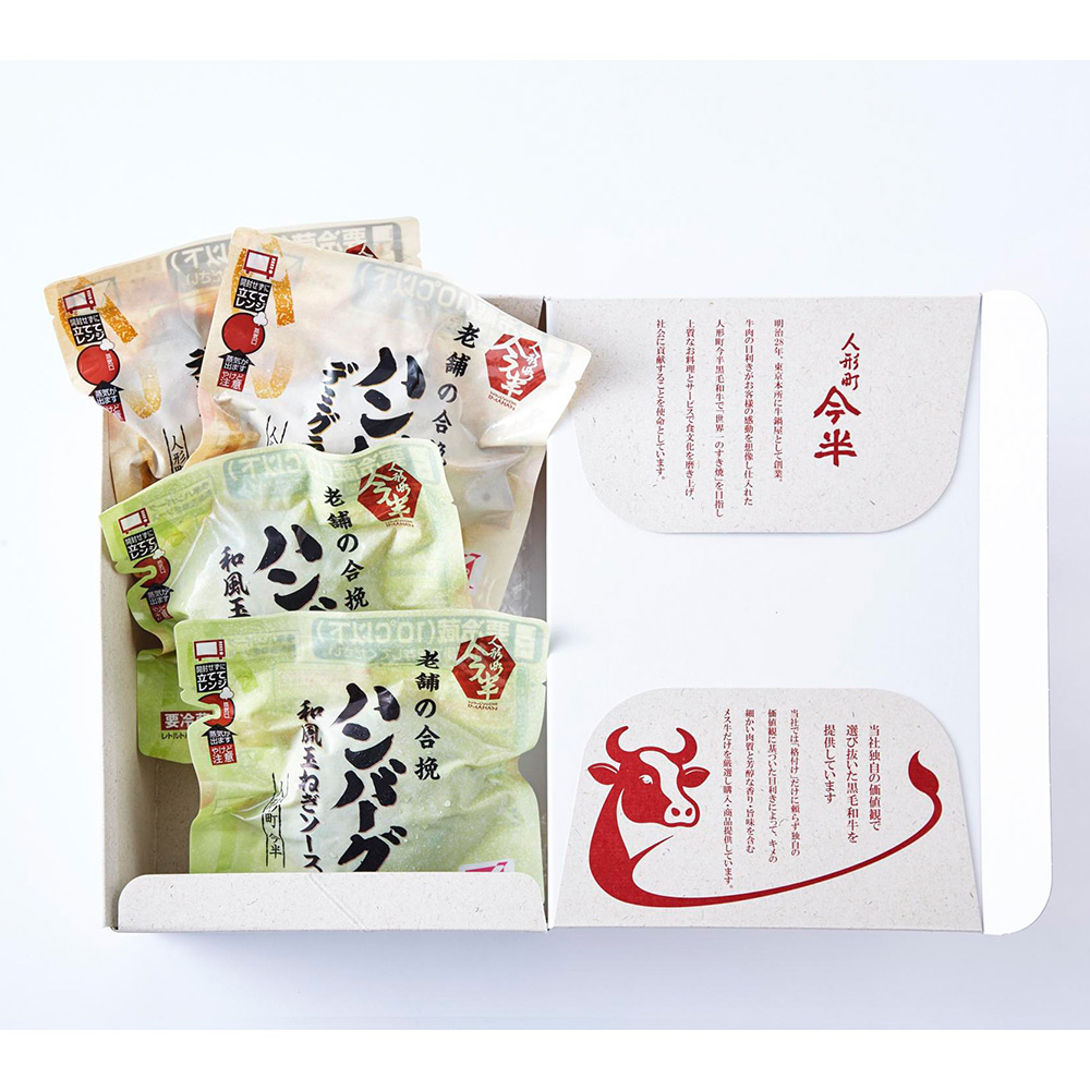 国産和牛75%と風味と味わいに優れた豚肉の「東京エックス」を25%使用しました。デミグラスソースと和風玉ねぎソースが2個ずつ入ったセットです。