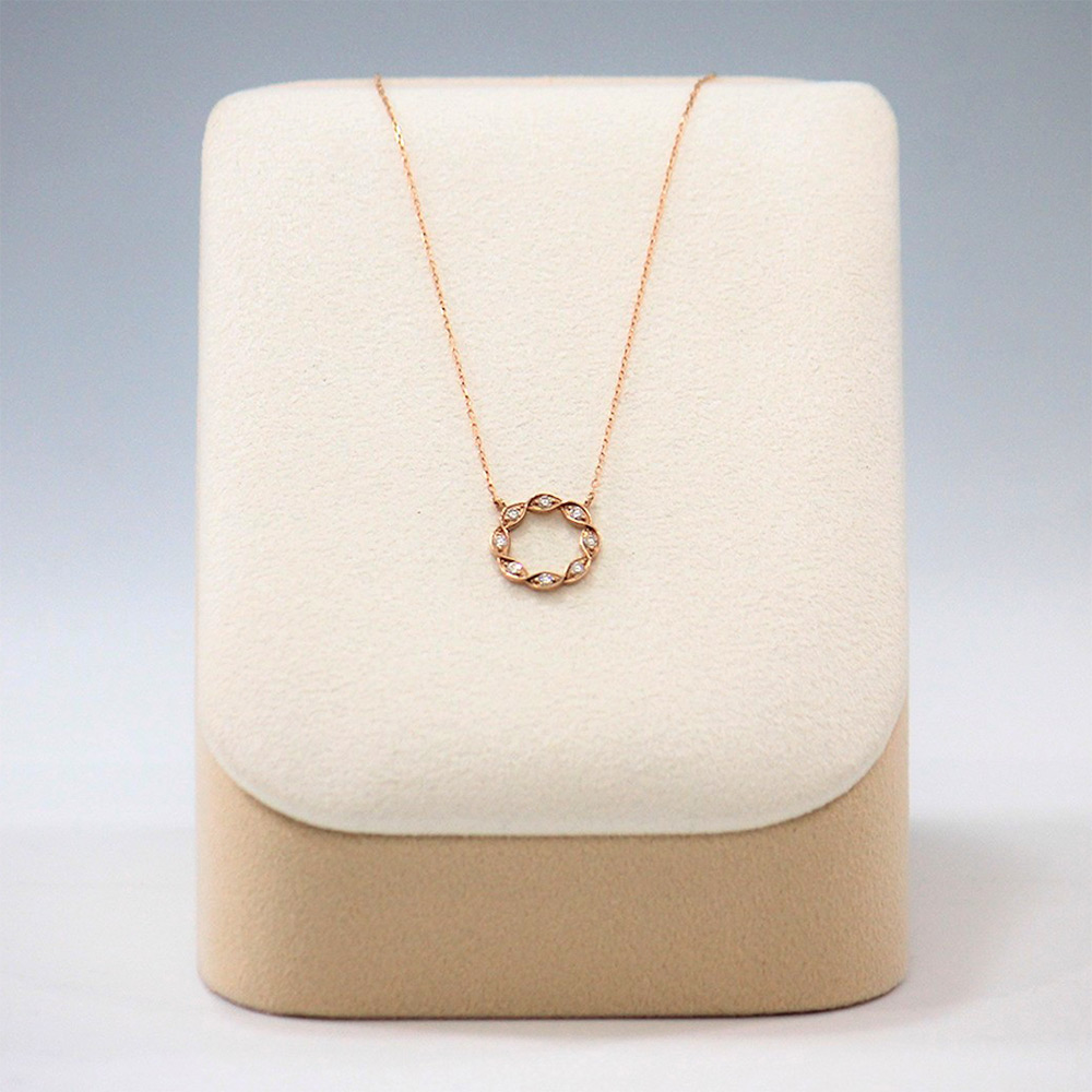 K18PGの肌なじみがよく、おだやかなモチーフのペンダント。普段使いにピッタリです。
