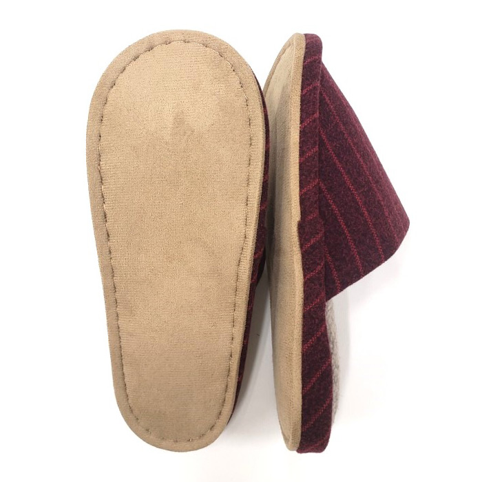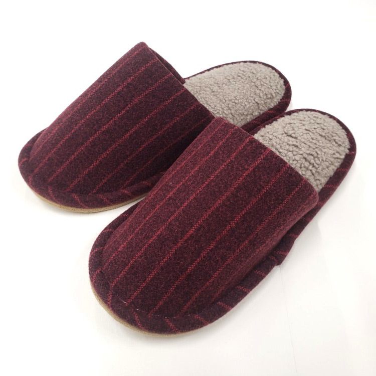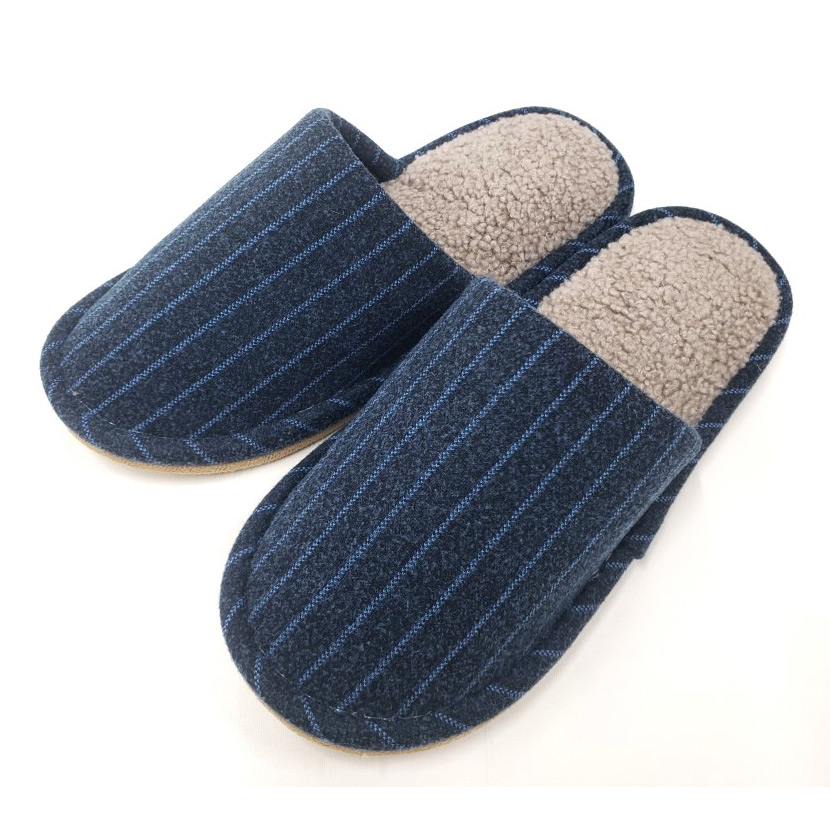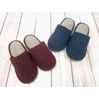ストライプ柄がシンプルなスリッパ。中敷きのモコモコ素材が足全体を包み込み、冬の寒さから足を守ってくれます。