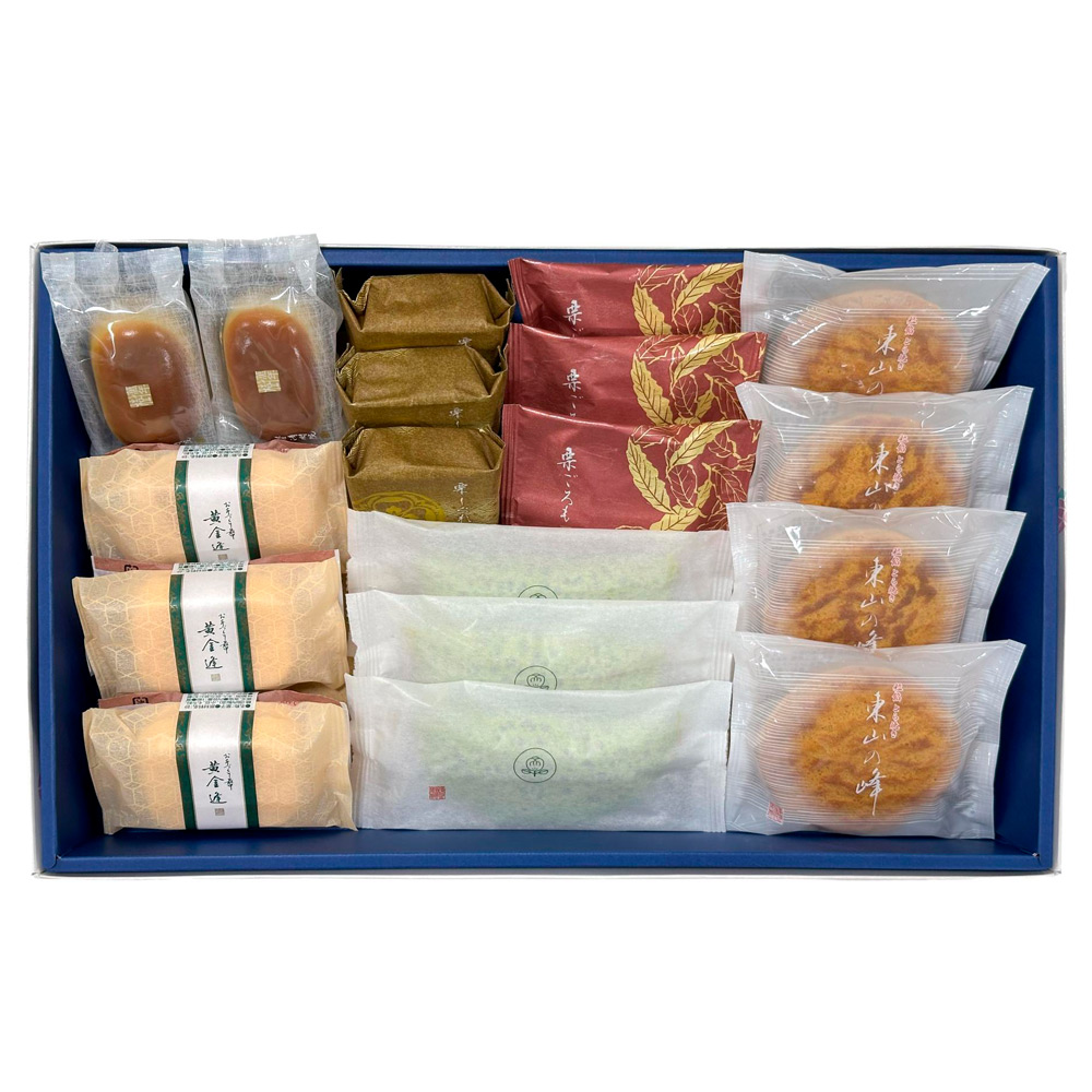 東山の峰×4、栗ごろも×3、栗しぐれ×3、萬年樹×2、お手づくり最中 黄金逢×3、抹茶ふくさ餅×3