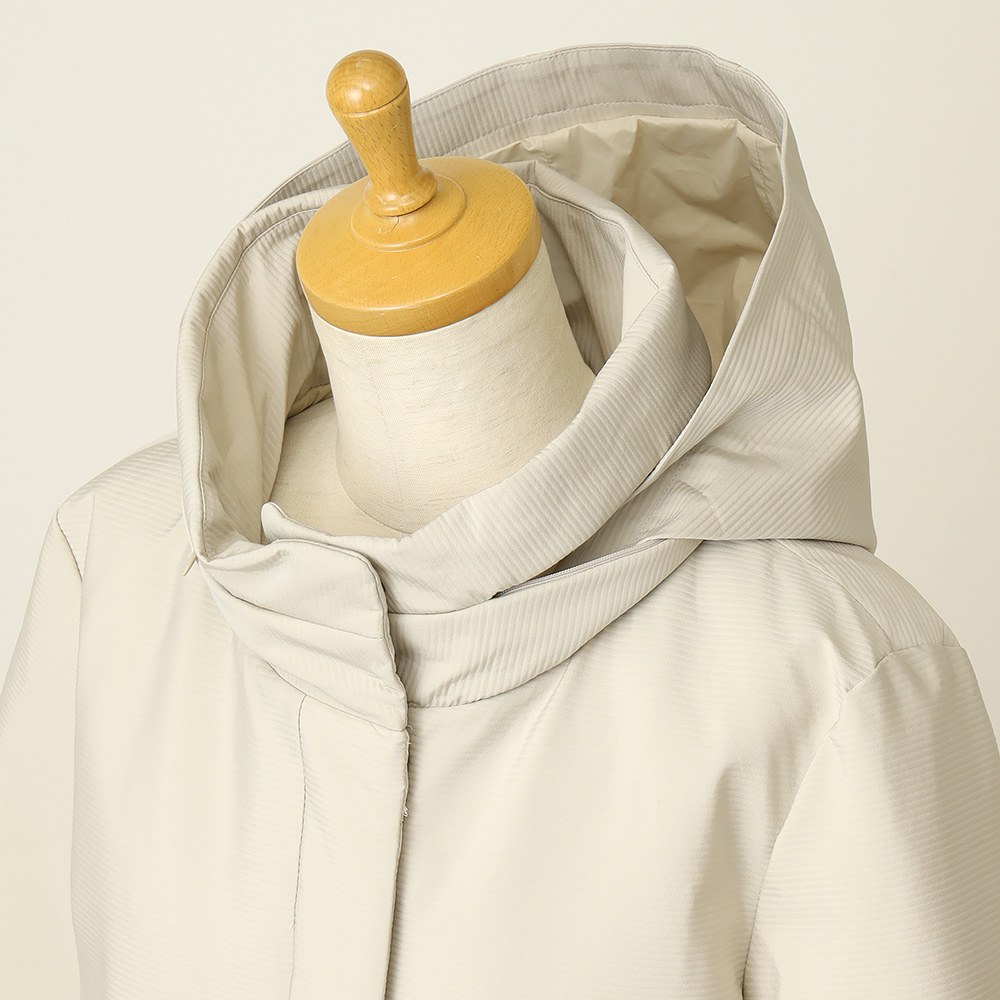 小さく折り畳めるフード付きのスタンドカラーという実用的な仕様に仕上げました。冬の装いに映える洗練された色合いも魅力的。寒さ対策とファッション性を両立した、冬の主役になる一着です。