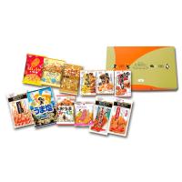 (のり天うま塩75g、小粒あられピーナッツ56g、さつま揚げ41g、焼きとうもろこし醤油味40g、おつまみッくス38g、むきむきあまぐり36g、いか天大王24g、フィッシュフライ&ポテトフライコンソメ風味28g、紅しょうがいか天23g、するめそうめん20g、大学するめ20g、恋するめ13g計12袋)2箱