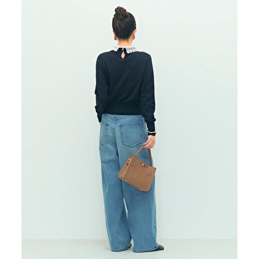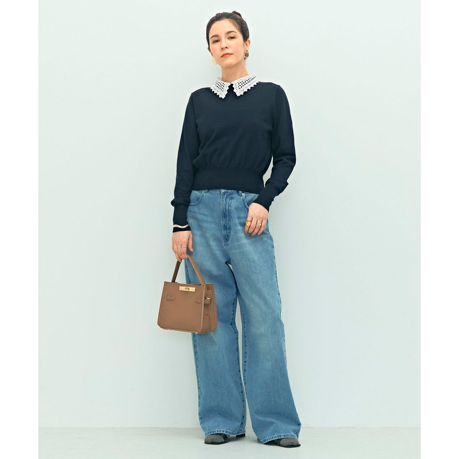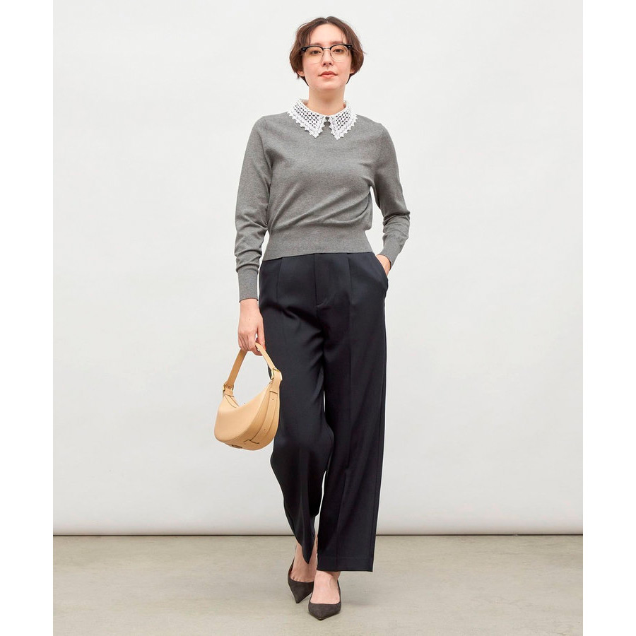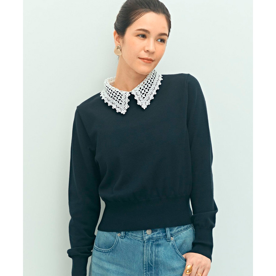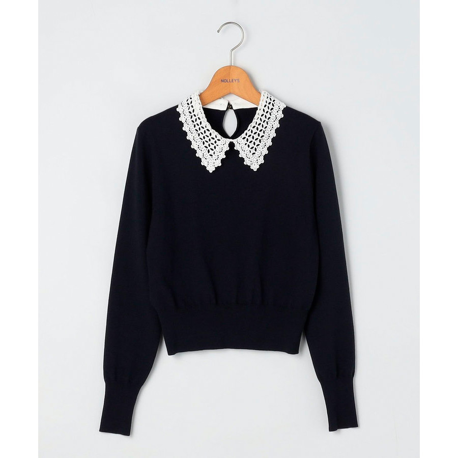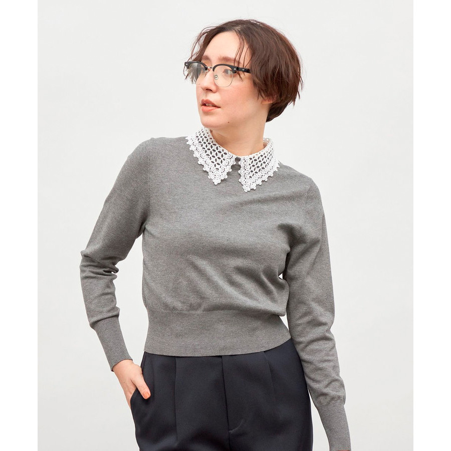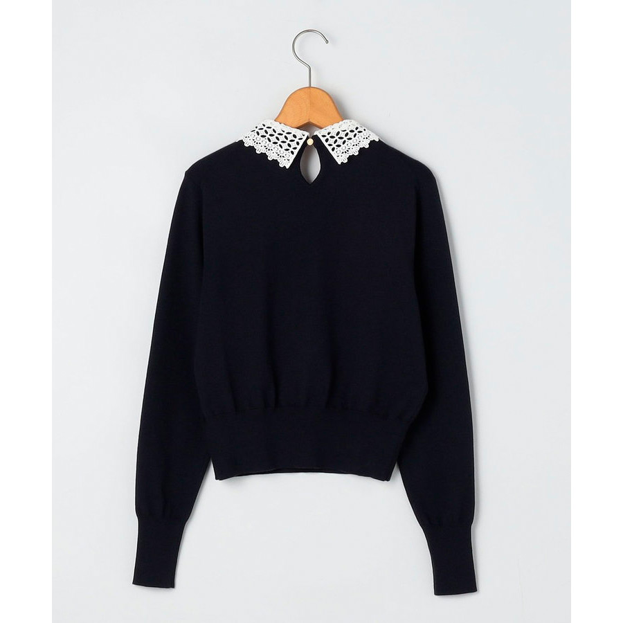 取り外し可能な白のレース衿がアクセントのプルオーバーニット
