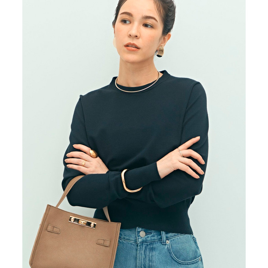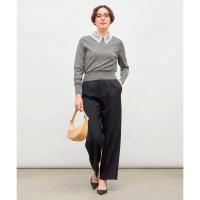 ボディは滑らかなレーヨンストレッチ素材。伸縮性があり心地よい着心地が魅力。きちんと感と程よい甘さがちょうどいい1枚。ボトムによってオンにもオフにも活躍。襟を取りはずせば、シンプルなニットになり着回し力抜群。ロングシーズン活躍。