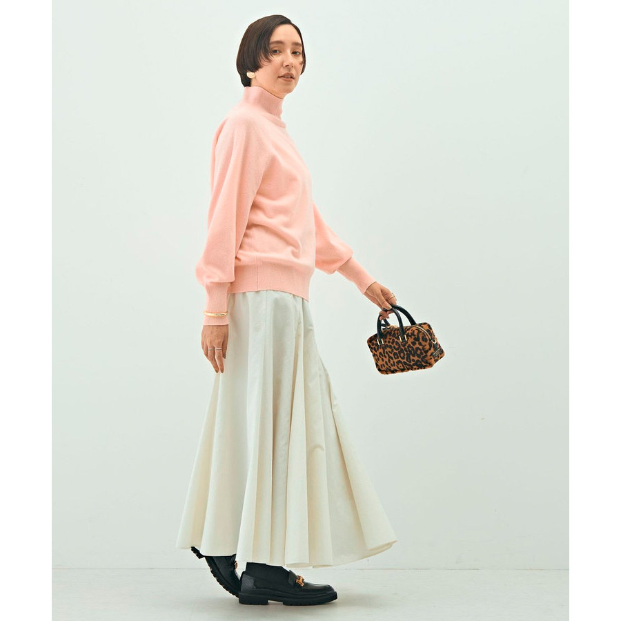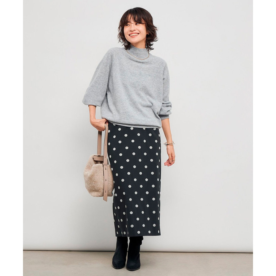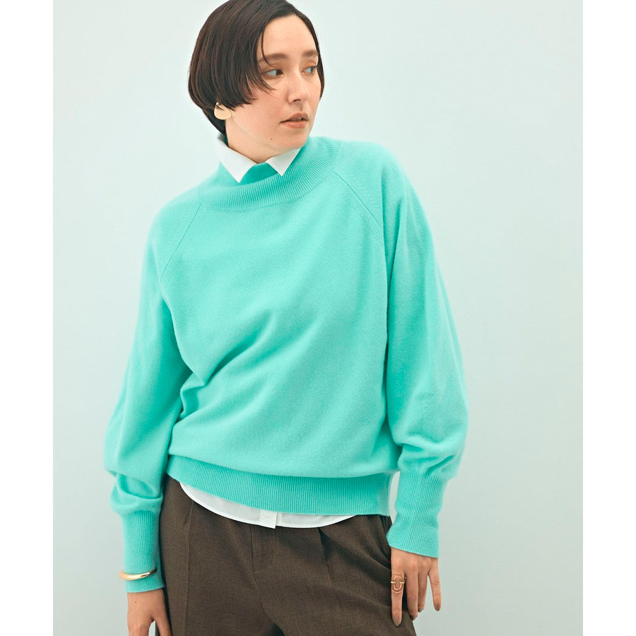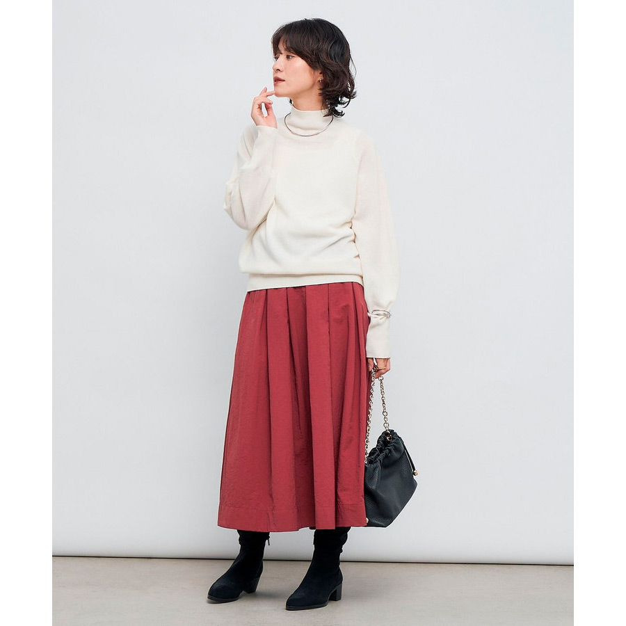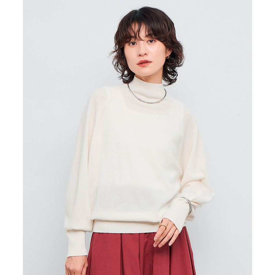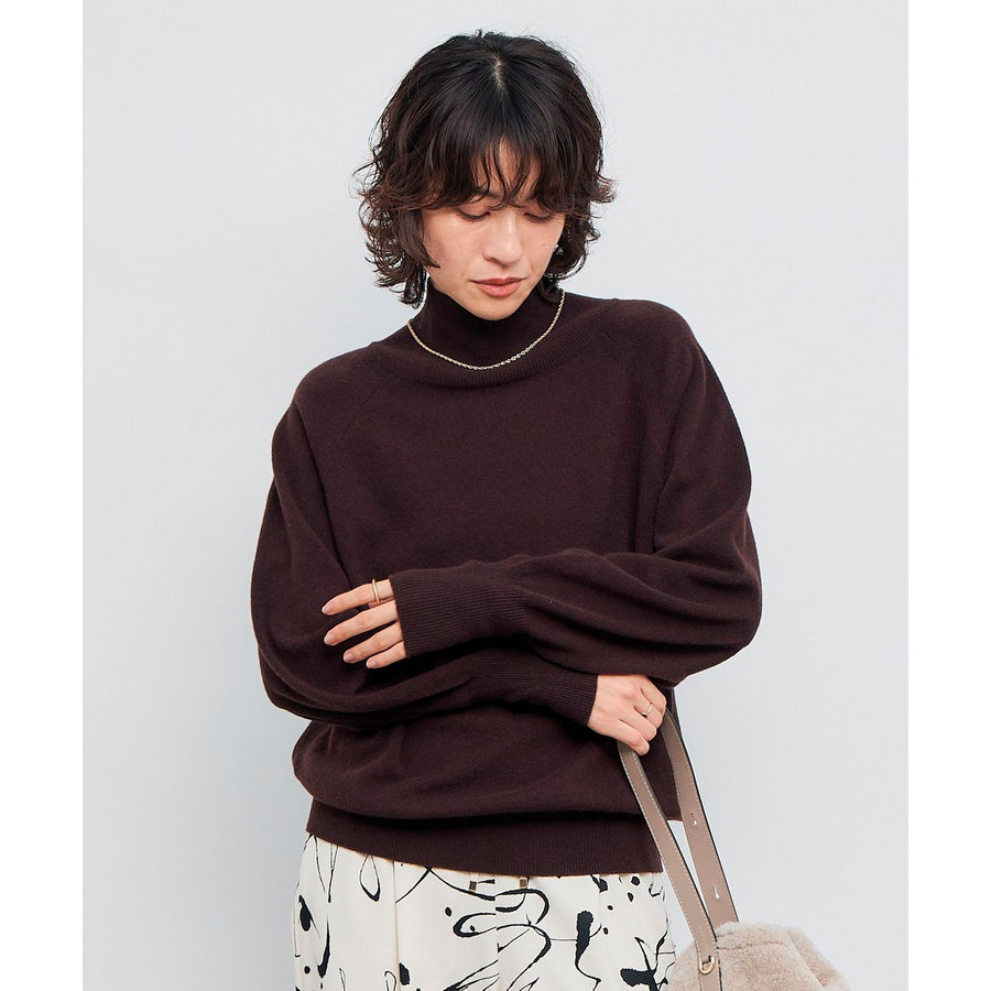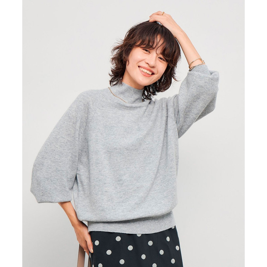 すっきりしたハイネックとパフスリーブの組み合わせが新鮮なニット
