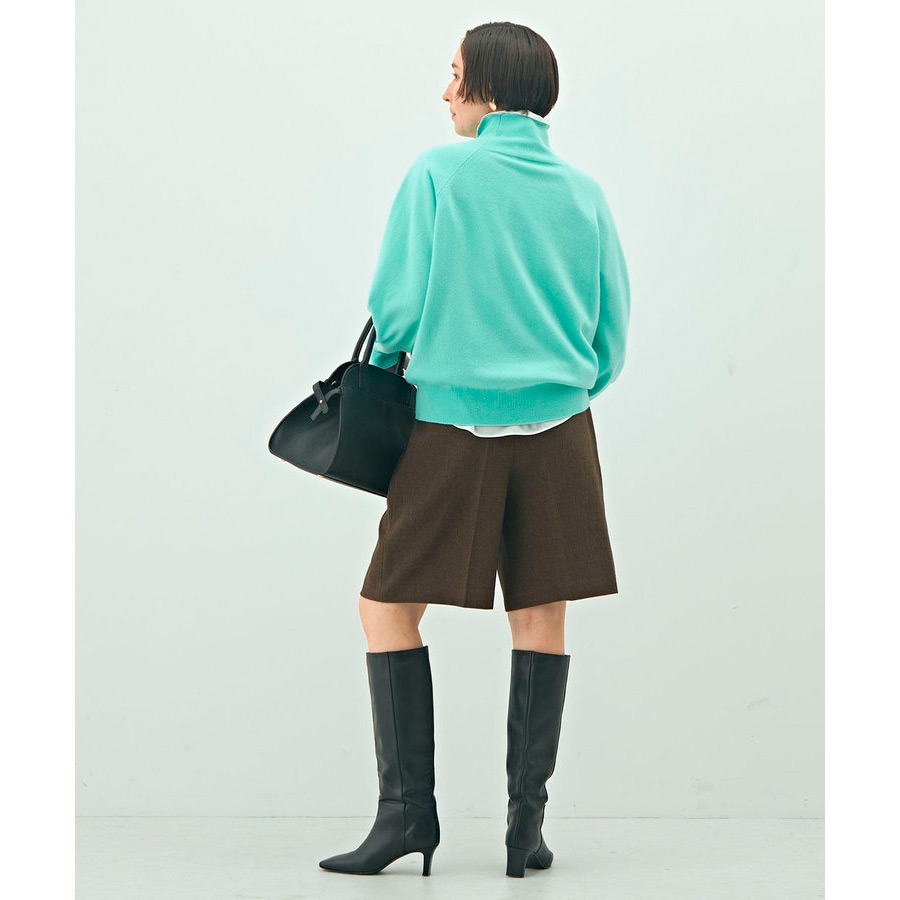 極細17.5マイクロンのウールを贅沢に使用。柔らかくふくらみのある風合いが特徴な糸を使用。上質な素材で肌触りも柔らかく発色もキレイなのが特徴。モードにもデイリーにも重宝するデザイン。程よい肉感で、ジャケットインにも最適。