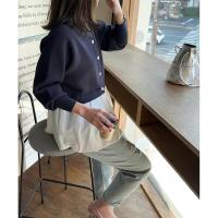 ・綺麗目なミラノリブで仕立てたニットカーディガンにふんわり立体感のあるメモリー素材のバルーンヘムでモダンな印象のカーディガンに・ビジュー釦が華やかで遊び心のある1枚。・前後2way仕様なので、釦を閉めてプルオーバーとしてもお使いいただる万能アイテム・袖口のリブは長めの設定で袖のボリュームを強調デザイン性があるのに着心地抜群・ボトムはタイト目で綺麗目エレガントなイメージにワイドパンツやカジュアルボトムスで今っぽいイメージにお使いいただけます。・羽織にも、プルオーバーにも、コートインのインナーにも使えるので息の長いアイテムです。