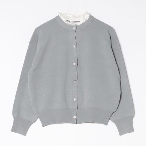 ・綺麗目なミラノリブで仕立てたニットカーディガンに取り外し可能なフリル衿をドッキング・衿のフリルは取り外し可能なのでコーディネートの幅が広がります・ビジュー釦が華やかで遊び心のある1枚。・羽織にも、コートインのインナーにも使えるので息の長いアイテムです。