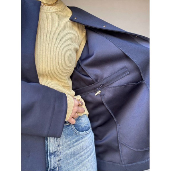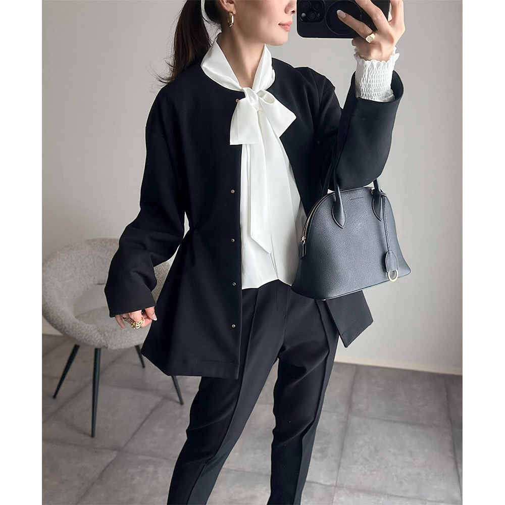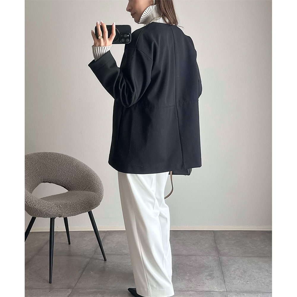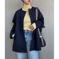 ・しなやかでスフレタッチなダンボール素材を使用。・ラインがすっきり綺麗に見えるノーカラーコートはきちんと感があり、女性らしい印象に。・ウエストにはゴムドロストを内蔵。高めの位置で設定されているので腰の位置が高く見えるため、スタイルアップ効果が叶います。メリハリのある印象でスッキリ見えに。・お尻も腿回りもすっぽり隠れる着丈で体型カバーも。・程よい厚みでハリ感のある綺麗目素材を使用しているのでON、OFF共にお使いいただけます。・インナーにはTシャツやブラウス、タートルながおススメ。ボトムは細身のものから、ウエストを軽く絞ればワイドパンツやペンシルスカートなどとも合わせることができます。