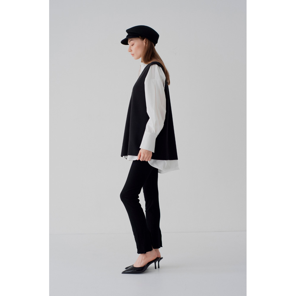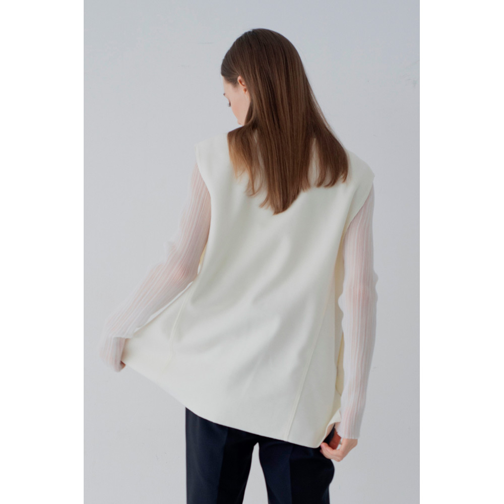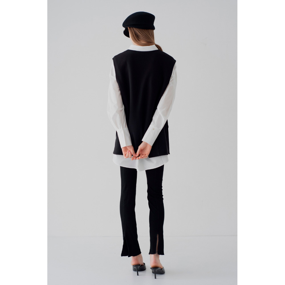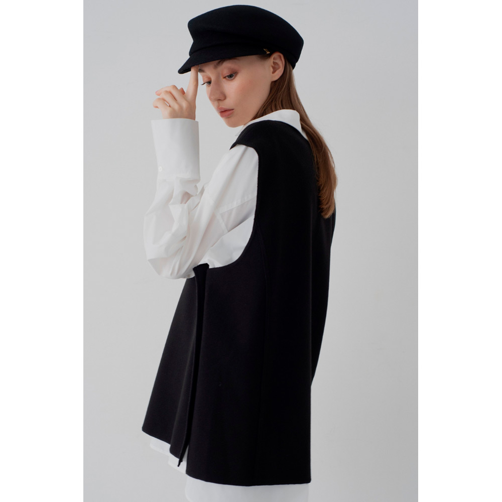 オールシーズン使えるベストが登場。V字のカッティングに拘り、重ね着しやすい絶妙なデザインにしたことで、インナーを選ばず様々なスタイルにマッチします。ベストと同じ生地を使ったサイドボタンがアクセント。ボタンは外すことができ、スリットの深さを自由に調節し、お好みの着こなしが可能です。1枚持っているだけで、季節を問わず、様々なシーンで活躍するアイテムです。