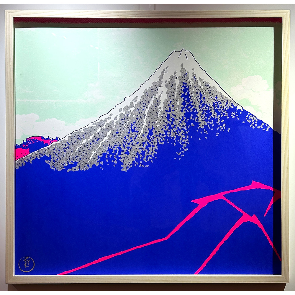 <山本 太郎 YAMAMOTO Taro>「Blue Mt.Fuji with pink thunder」モノプリント