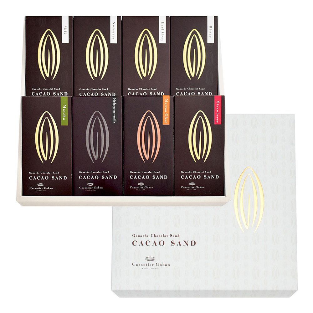 カカオサンド(ハイミルク、ヘーゼルナッツ、アールグレイ、ビター、抹茶、ストロベリー、マダガスカルバニラ、マロングラッセ)お届け時期:11月1日から12月25日(承り期間:12月18日まで)