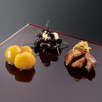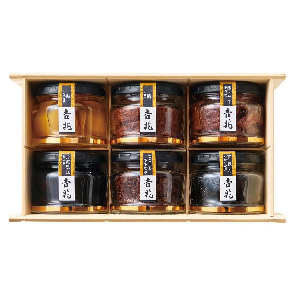 鮪ふれいく・真昆布やわらか煮各80g、国産牛洋酒煮・丹波黒豆あま煮各70g、栗ふくませ煮60g、なま干しさざなみ50g
