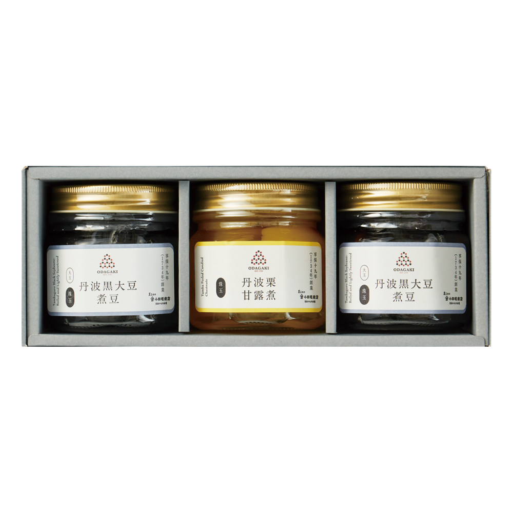 丹波黒大豆煮豆160g(固形量)×2、丹波栗甘露煮130g(固形量)