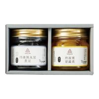 兵庫県産の丹波黒を手作業で選別し、ふっくらと艶やかに炊き上げた「丹波黒大豆煮豆」。栗が持つ上品な甘みとやさしい風味を引き出した「丹波栗甘露煮」も一緒に。