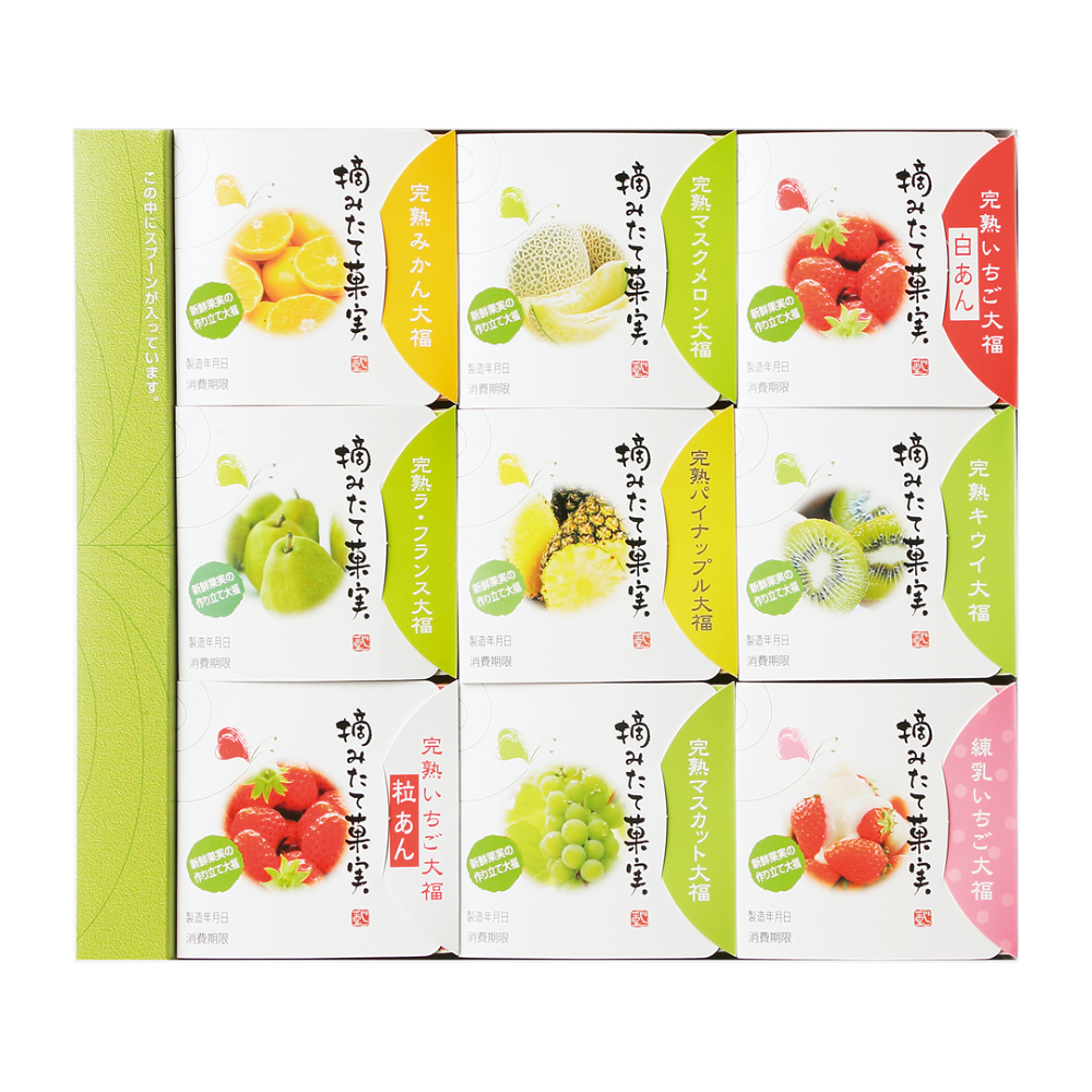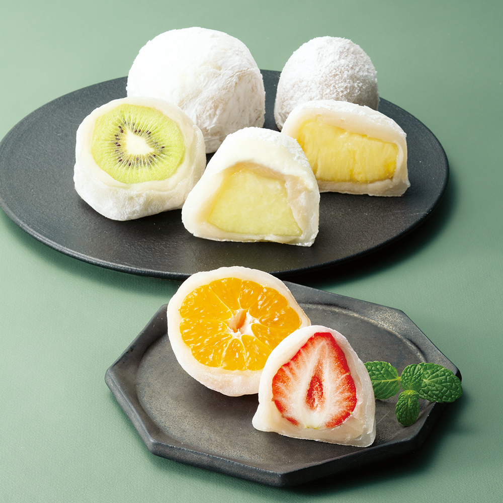 果汁が滴るほどのジューシーなフルーツを、ふんわりやわらかなお餅と、その味わいを引き立てる絶妙な甘さのあんで包みました。