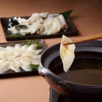 とらふぐならではの食感と味を楽しめるよう切り身とアラをご用意。のどぐろはしゃぶしゃぶに。その後、寄せ鍋にも。