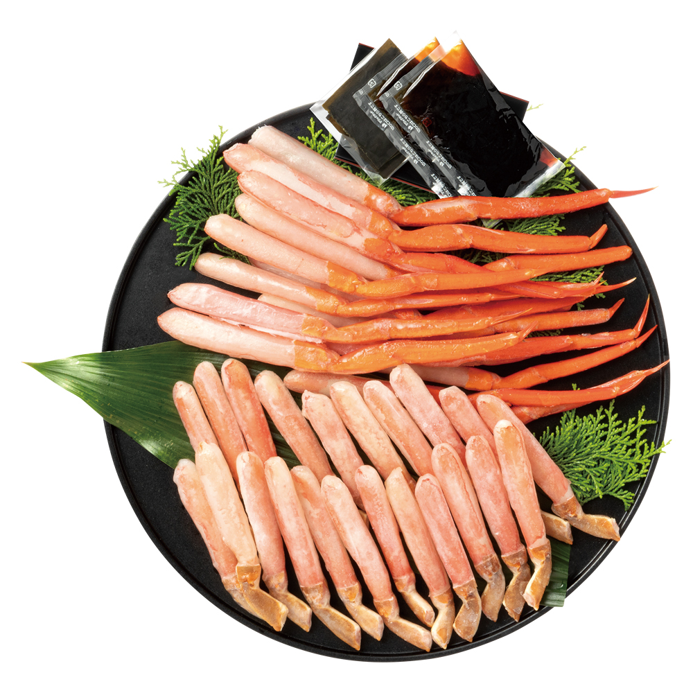 ずわいがにと紅ずわいがにを、水揚げ後、浜茹でせずに、すぐにさばいて冷凍。しゃぶしゃぶで、2種類のかにの旨みを存分にお楽しみください。