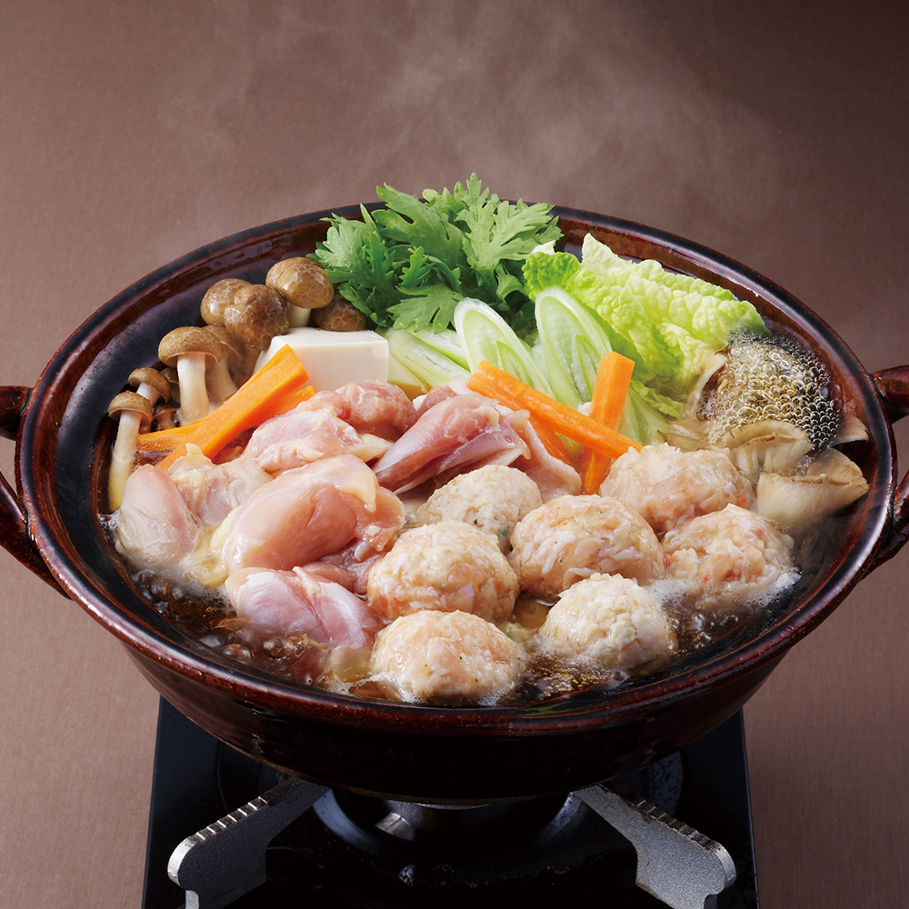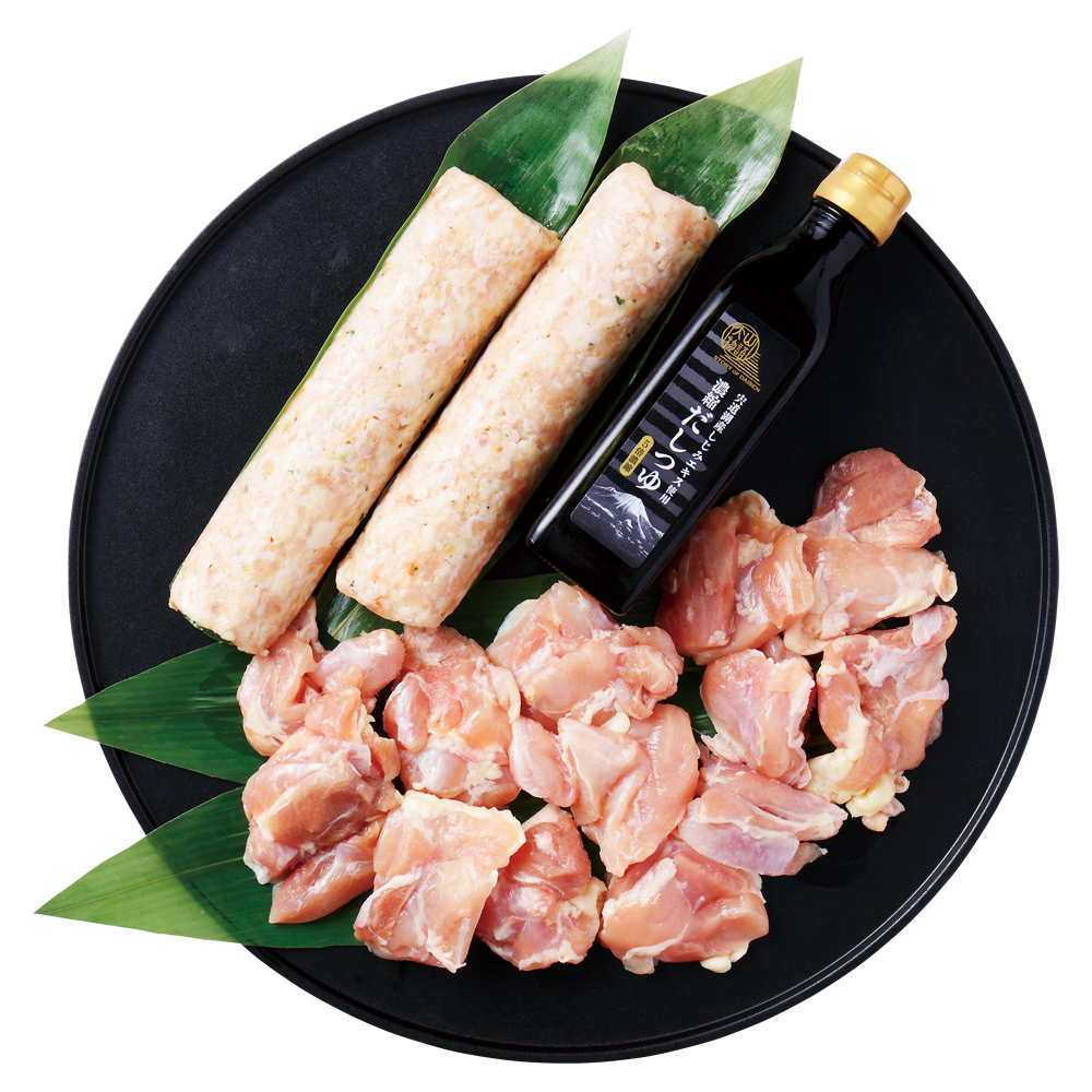 大山どりもも角切り200g×2、大山どりつみれ200g×2、濃縮だしつゆ(5倍濃縮)200ml、3~4人前