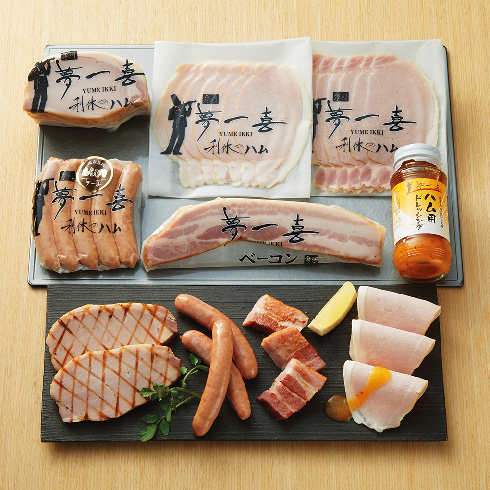 手づくりにこだわる大阪のハム工房から。じっくりと熟成させたロースハムなどをセットにしました。