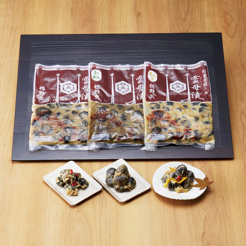 雲母漬200g、柚子雲母150g、山椒雲母150g