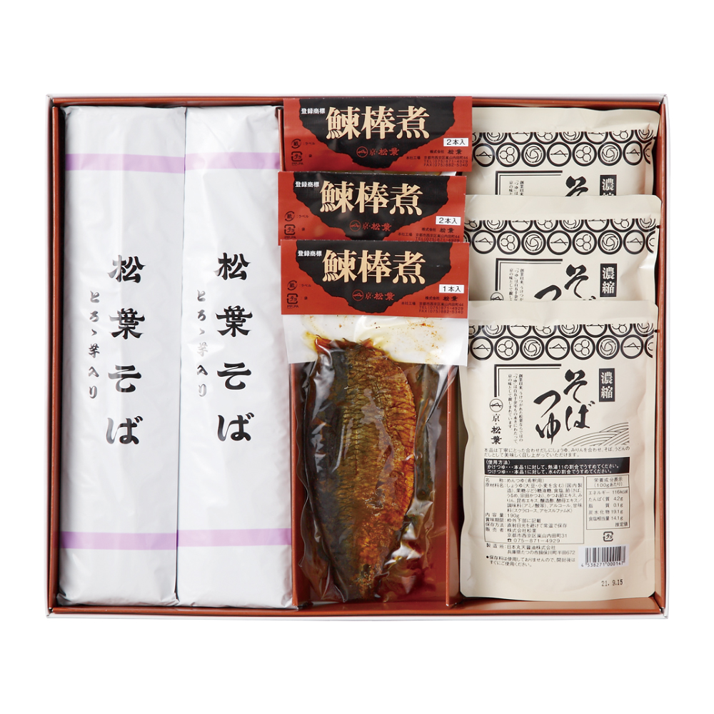 鰊棒煮2本入×2、鰊棒煮1本入、乾麺そば260g×4、濃縮そばつゆ190g×3