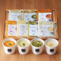 北海道産とうもろこしと鶏肉のシチュー・トマトと鶏肉のシチュー・きのこと牛蒡のホワイトシチュー・塩糀と生姜のチャウダー・緑の野菜のミネストローネ・生姜入り和風スープ・とうもろこしとパプリカのチリビーンズスープ各180g ※電子レンジ対応 ※トッピングはイメージです。