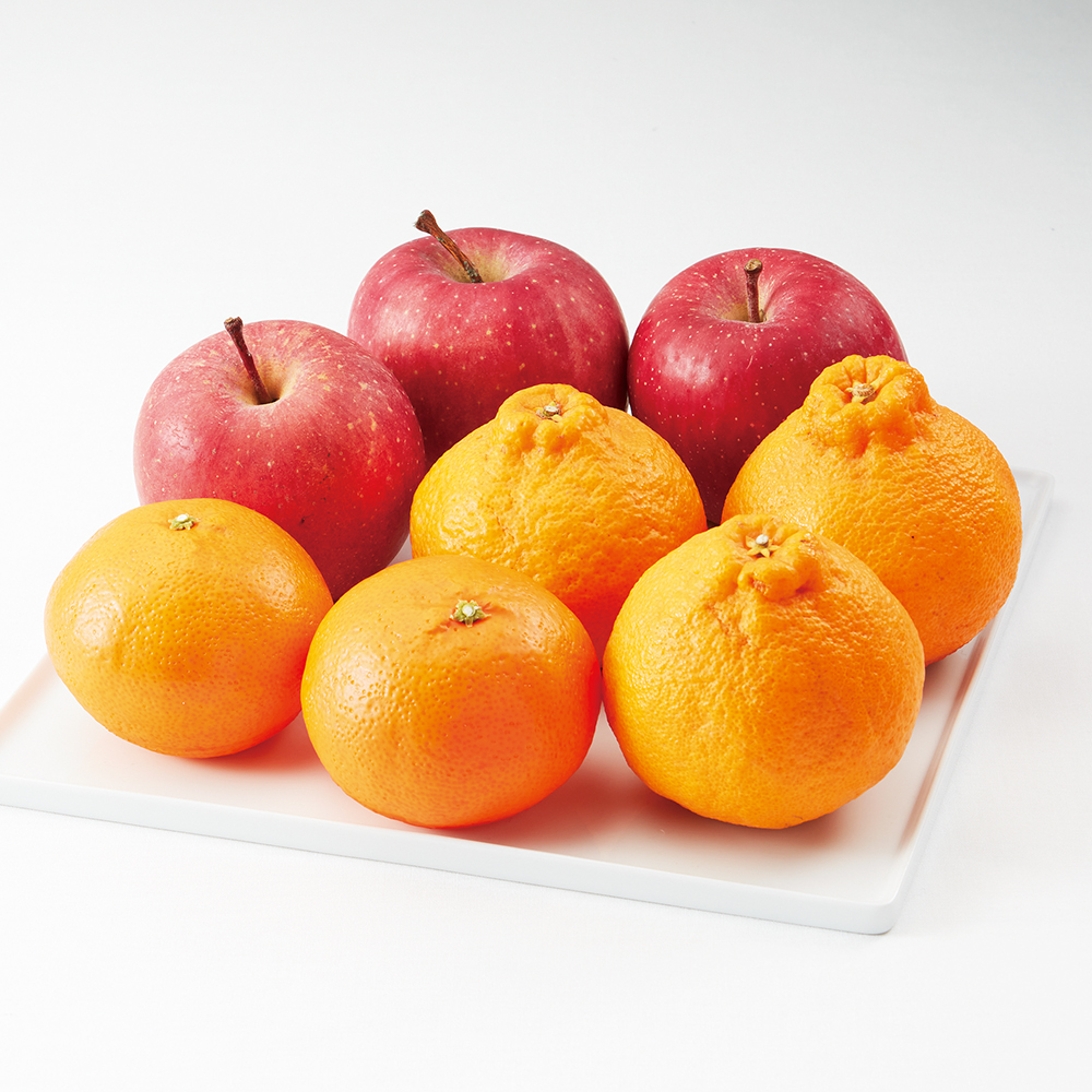 愛媛県産紅まどんな×2個、青森県産サンふじ×3個、熊本県産デコポン×3個、計2.0kg(承り期間:12月10日まで)最適な時期に収穫し、順次お届けいたします。配送日・お届け時期の指定は承れません。